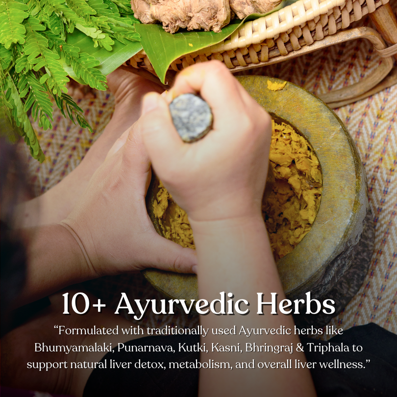 It focuses on improving liver function, supporting fat metabolism, and maintaining healthy digestion using classical Ayurvedic herbs.